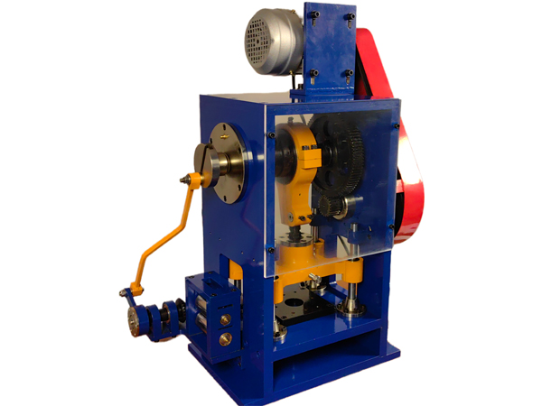 電動機通過V帶傳動和開式齒輪傳動帶動偏心軸傳動,若牙嵌式離合器結(jié)合,偏心套帶動連桿及滑塊做上下往復(fù)運動,在連桿上設(shè)有閉合高度調(diào)節(jié)裝置,分開牙嵌式離合器,調(diào)整偏心套與偏心軸相對偏心量,能調(diào)整沖壓行程,偏心軸端部安裝有曲柄并設(shè)有送料行程調(diào)整裝置,通過曲柄擺桿超越離合器錐齒輪傳動,帶動輥子完成滑塊上升完成間歇送料功能。